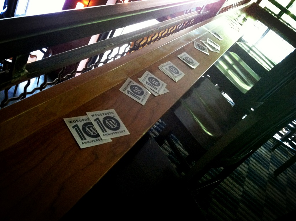 Yesterday, a group of us in Boston got together and celebrated WordPress’s 10th Anniversary. We were one of hundreds of parties planned around the world. We had over 100 people RSVP’d, but ended up drawing a crowd of about thirty. It was a pretty nice, intimate event.